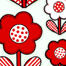 ルネは、果物や野菜に加えて、花も数多くデザインしています。デイジー、アネモネ、ひまわり、コスモスやパンジーなどルネのデザインする花は、どれも色鮮やかでかわいらい愛嬌のある表情が感じられます。